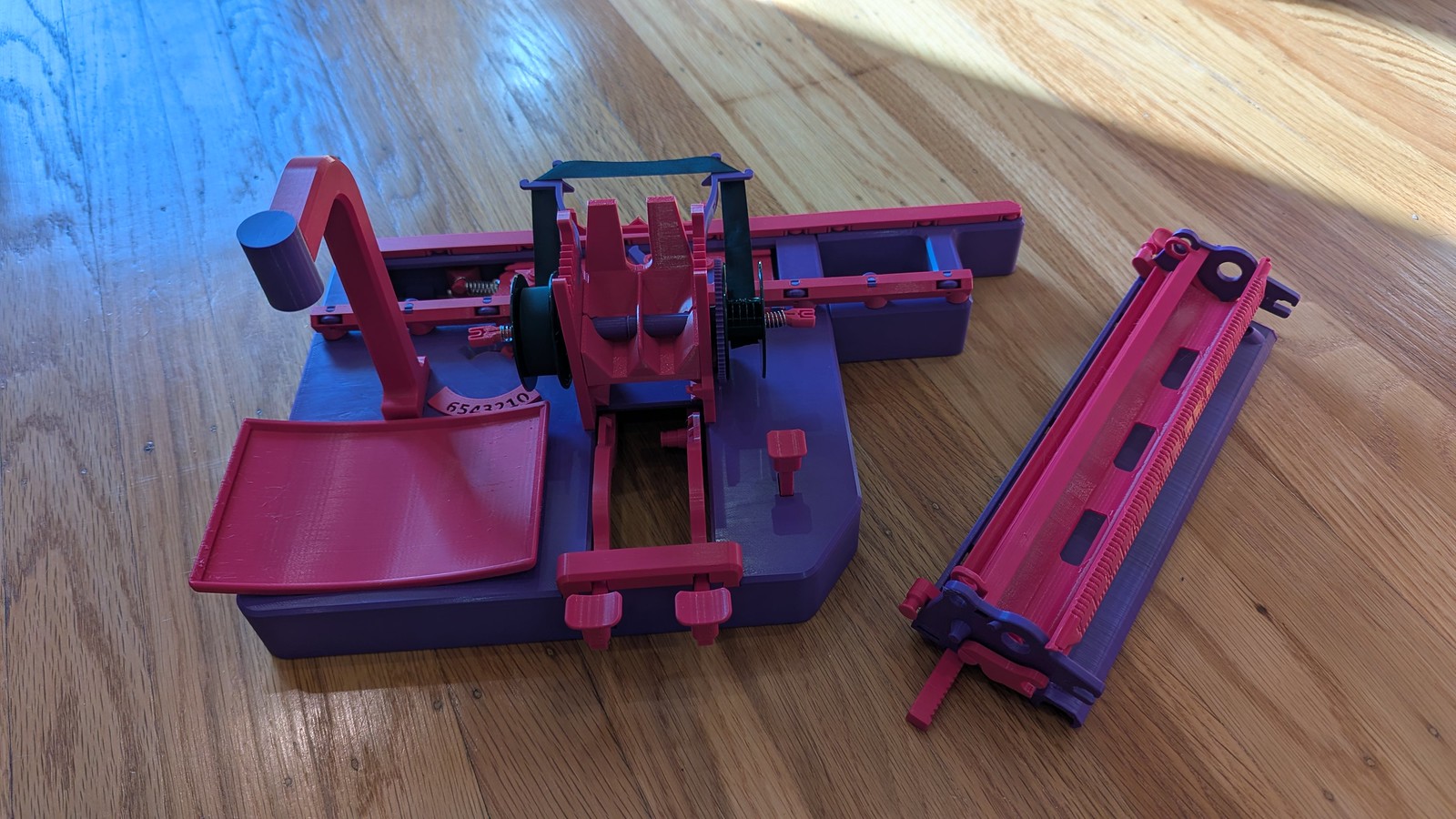 I bought this spring set on Amazon, which had almost all the spring sizes I needed (and the missing smaller one I was able to cut down from a larger) and picked up a standard black ribbon (which you can still buy at all sorts of places). From there, I selected my colors: Purple and Magenta PLA+. The “Rubber” components were printed in Gray TPU 95A. I then carefully went through all 150+ parts and renamed them which color I wanted them to be, whether they’d need high infill, and numbered them so they were being printed by order of assembly. I then uploaded them to our shared drive and asked MJ to print them for me (remember I said I’m still afraid to use a slicer and send it to the printer? I’ll get there). Tip: Though 3mf files can include a lot of details like nozzle size, these ones aren’t written that way and it’s best to just follow the Printing Guide.