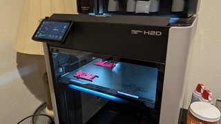 All the research and purchasing was done by MJ. I think the daunting number of options was a bit overwhelming to me, and if we waited for me to do the research we wouldn’t have landed on a very good result, if we ever got there. He decided that based on our time and experience (both minimal) plus the desire to print things up to basic engineering parts, meant that the Bambu H2D was the right model for us. We also bought a mountain of filament. It’s topped with a 4-color AMS Pro 2 and an AMS HT.