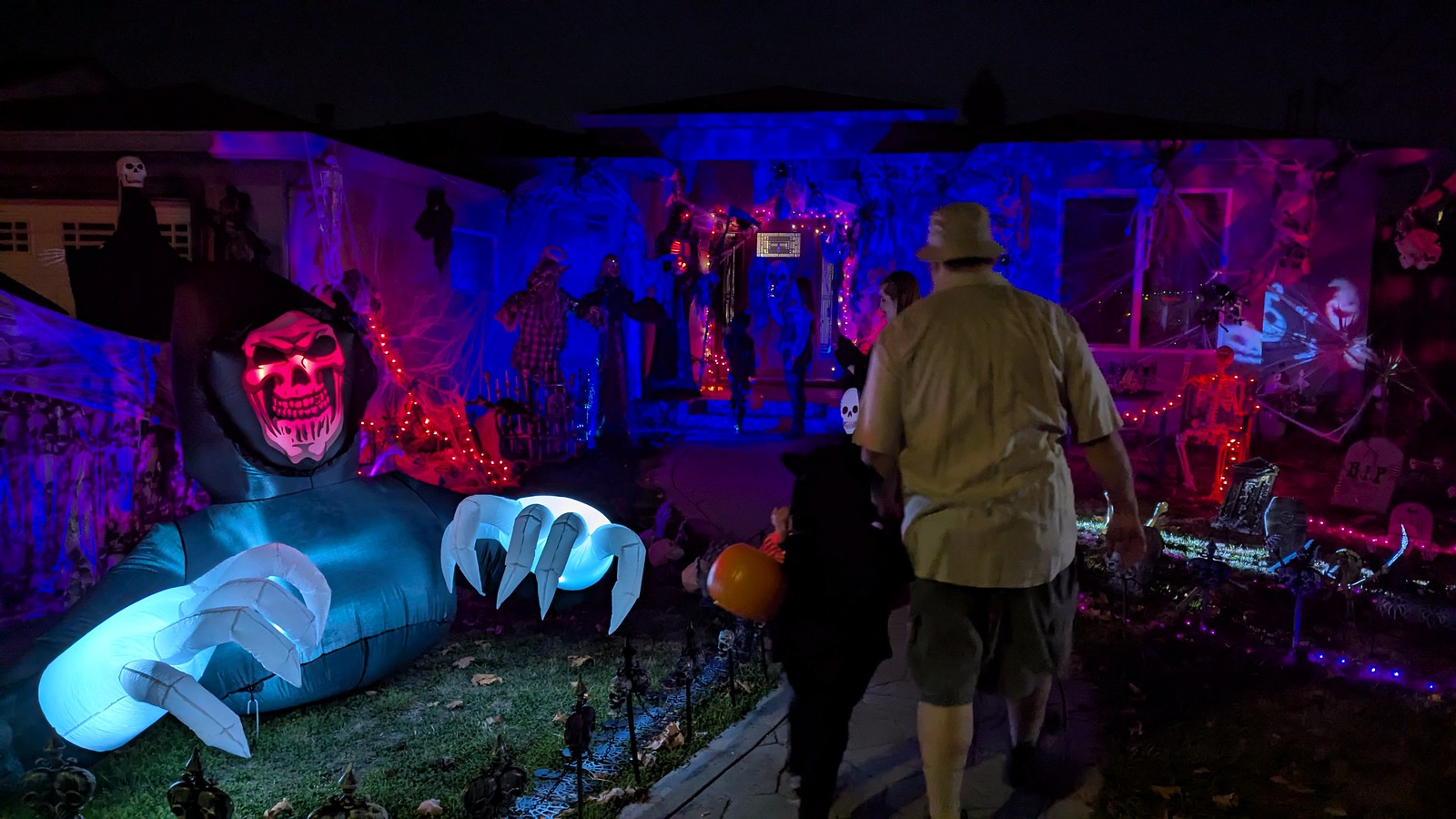 We also have several neighbors who go all out with Halloween decorations and activities, some of which are scarier than others. And enough of our neighbors in general participate in the holiday so the walking:candy ratio is perfect for us.