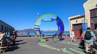 The venue of Fort Mason was also lovely, and they had regular shuttles from downtown San Francisco which made the hurdle of transportation a more surmountable one. Both mornings I had an easy journey on BART to a shuttle that left from Embarcadero station. Once there, the gorgeous San Francisco weather we enjoyed offered the perfect backdrop. If I needed some air, I could walk down a pier and get a glimpse of the Golden Gate Bridge. They also cleverly placed a giant GitHub sign so that you could see beautiful Alcatraz Island through it.