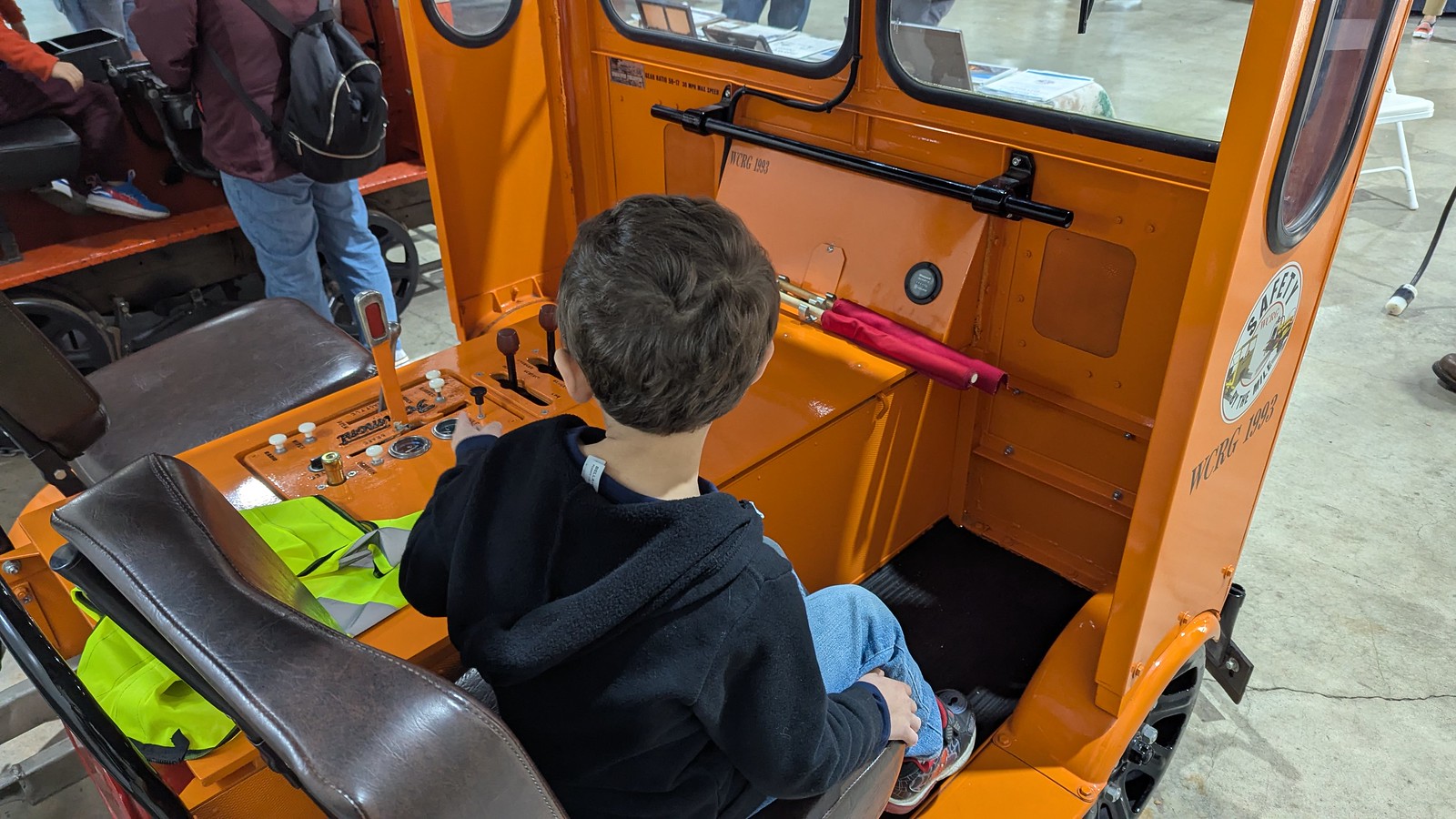 The boys also got to check out a couple of retired maintenance cars that are kept running by members of the West Coast Railroaders Group. Some people have boats and sail over water. Some people buy old rail maintenance cars and ride down tracks through beautiful forests. MJ spent some time talking with them as the boys kept themselves occupied by sitting in the cars and playing with the controls.