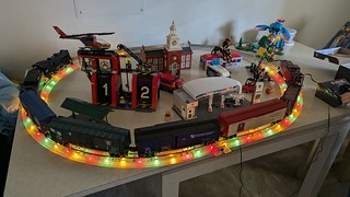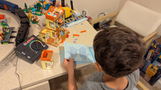 The light follows the train, now I just need to convince the boys not to put so many cars on the track at once.