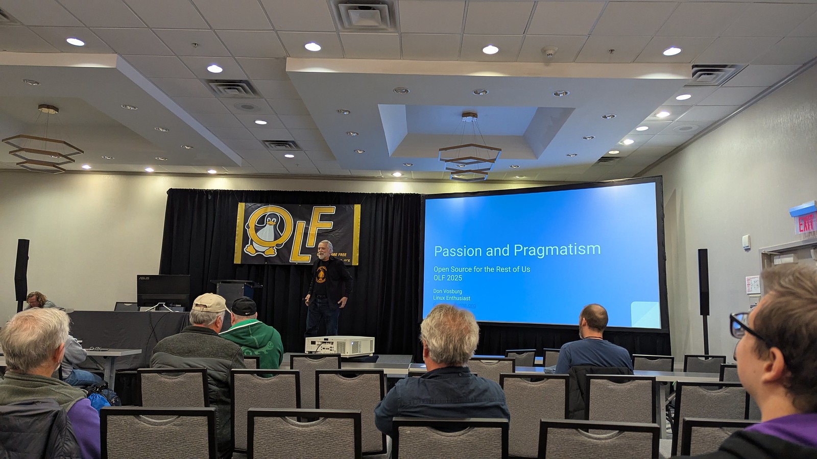 I really enjoyed the opening keynote from Don Vosburg on Passion and Pragmatism. He tugged on a familiar thread in the open source world around the fact that a lot of folks got into open source software “for fun” or the passion of it, but most of us eventually had to get professional jobs that may have tested our fundamental commitment to open source. Or other things that have arisen in our lives that require us to make a choice. I’ve definitely had to walk a line throughout my career, but consider myself quite lucky to have found myself a series of good positions that have allowed me to follow my passion and make a living.
