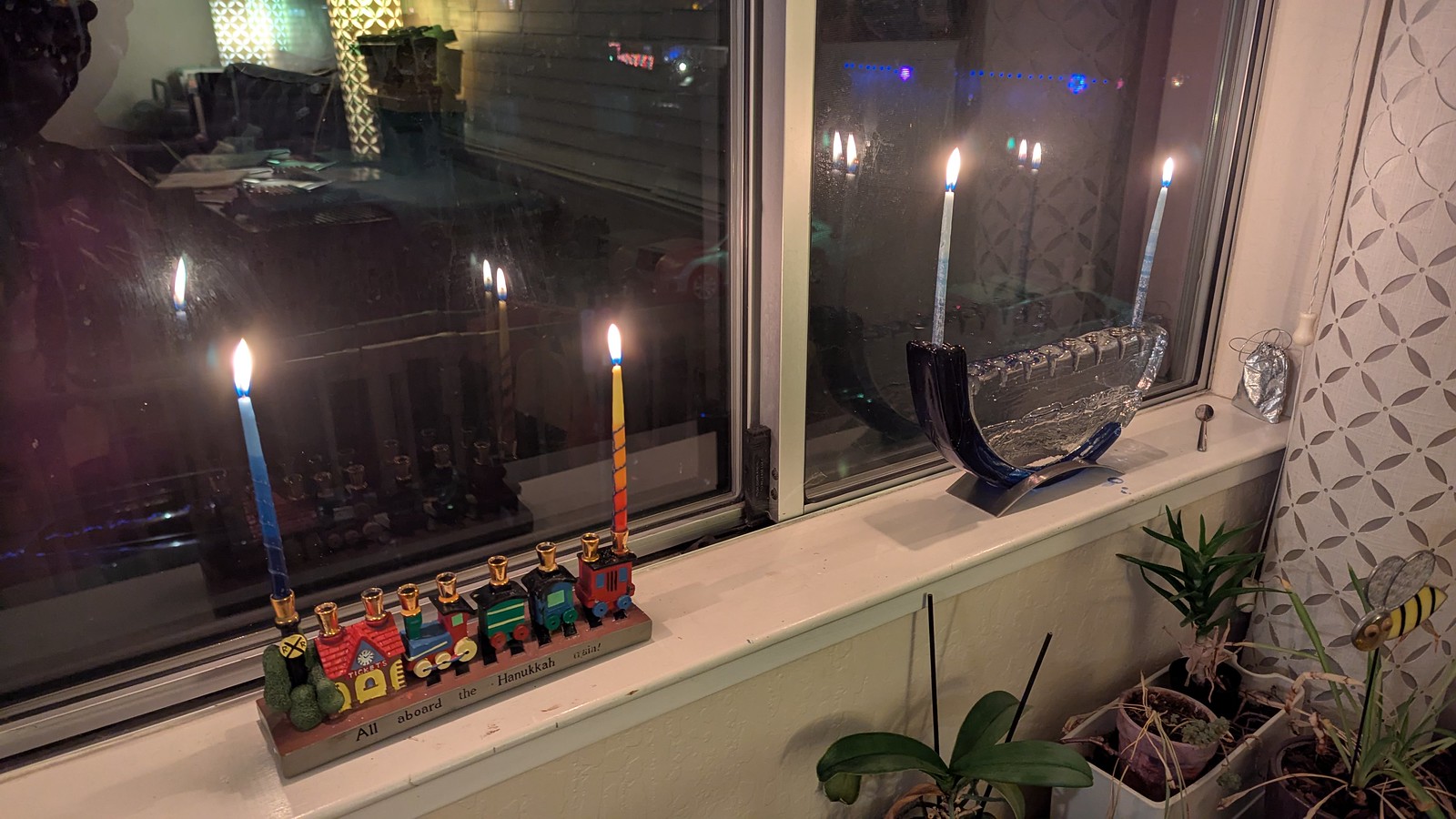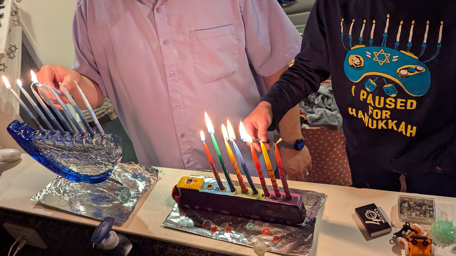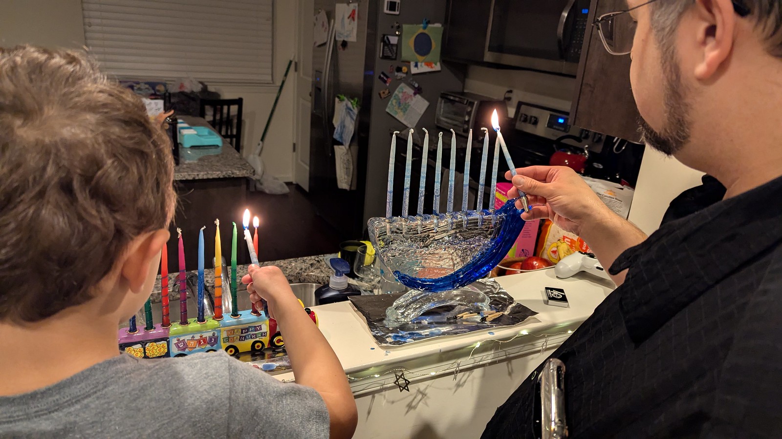 We spent the day downtown, and then joined grandpa, his aunt Irina, and cousin Sammy for lighting the candles the final night. With our menorahs full of candles, it was great to have family over, and we all had an enjoyable evening.