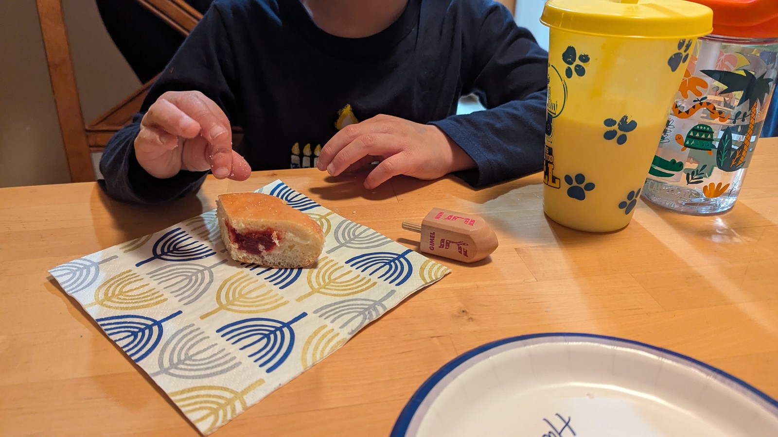 I also sent MJ and the boys out earlier in the day to hunt for some jelly doughnuts so we could enjoy a sufganiyot-ish treat this first evening.