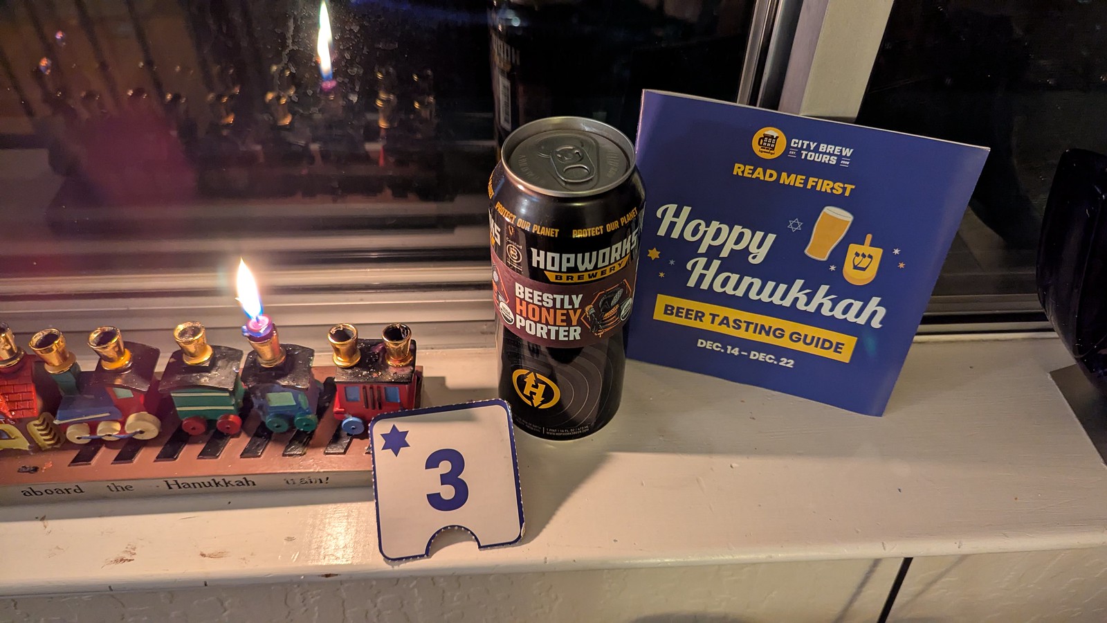 I enjoyed my third night of Hanukkah beer with my latkes and apple sauce.
